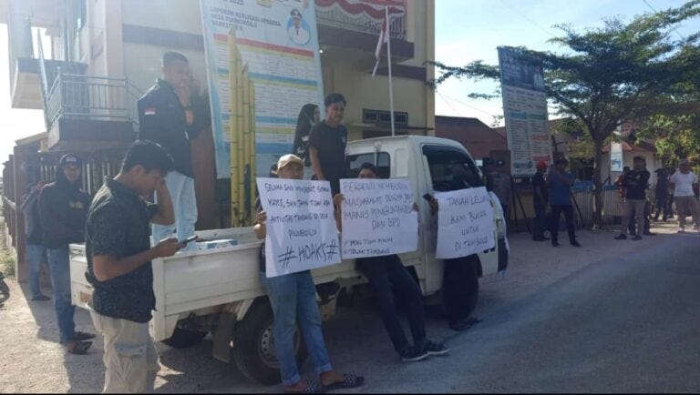(aksi rakyat Bahomoleo di Aula kantor desa)