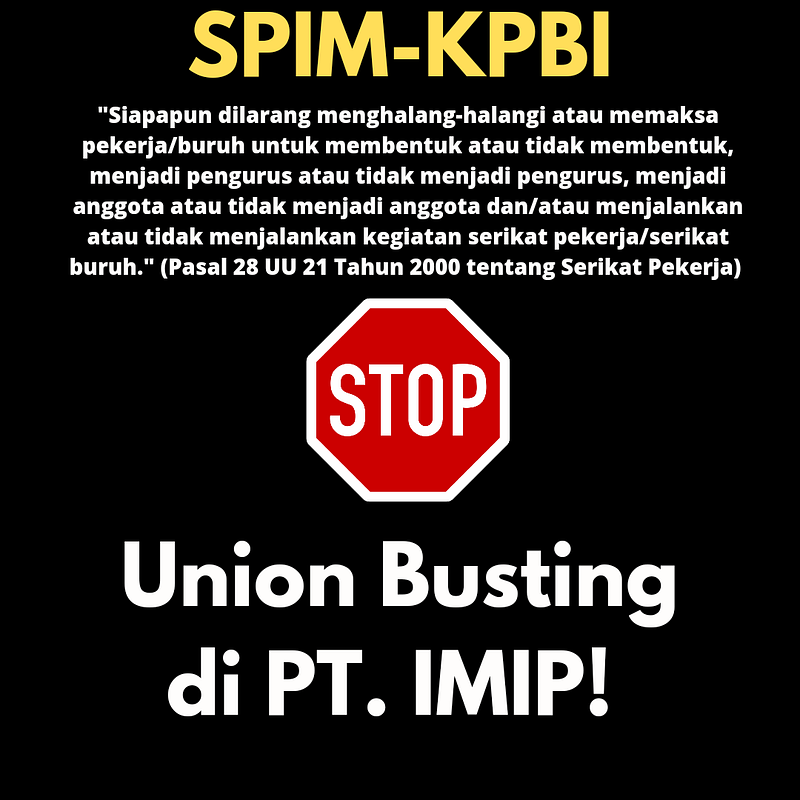 Baru-baru ini terdapat indikasi upaya pemberangusan serikat pekerja di kawasan PT. IMIP. Indikasi tersebut kami lihat dalam suatu memo yang dikeluarkan oleh pihak manajemen dalam aturan mengenai pengajuan izin kegiatan serikat.