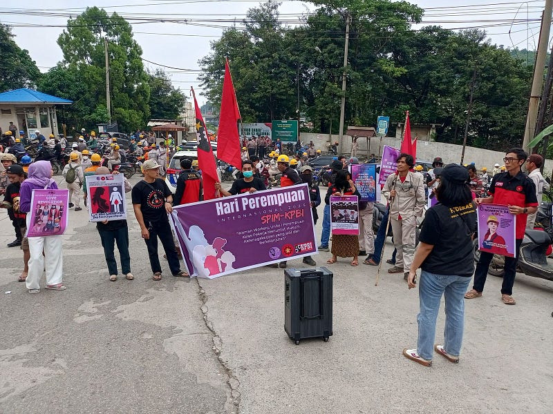 Aksi ini digelar sebagai bentuk perlawanan terhadap sistem ketenagakerjaan yang masih mengeksploitasi dan mendiskriminasi perempuan pekerja di kawasan industri PT. Indonesia Morowali Industrial Park (IMIP).